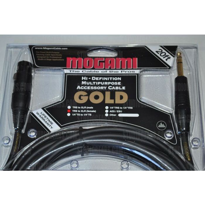 Mogami Gold TRS-XLRF Cable 20 ft. TRS to Female XLR patch cable. Made with Mogami 2534 quad cable.