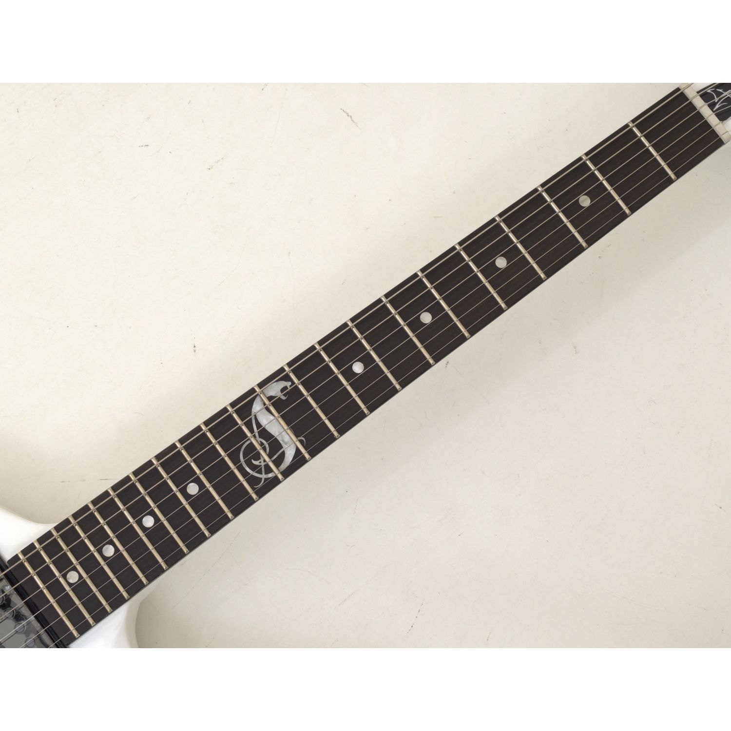 - Finish: The SNOW WHITE finish gives the guitar a striking, stage-ready look that complements its aggressive sound. The black hardware further accentuates its bold aesthetic.