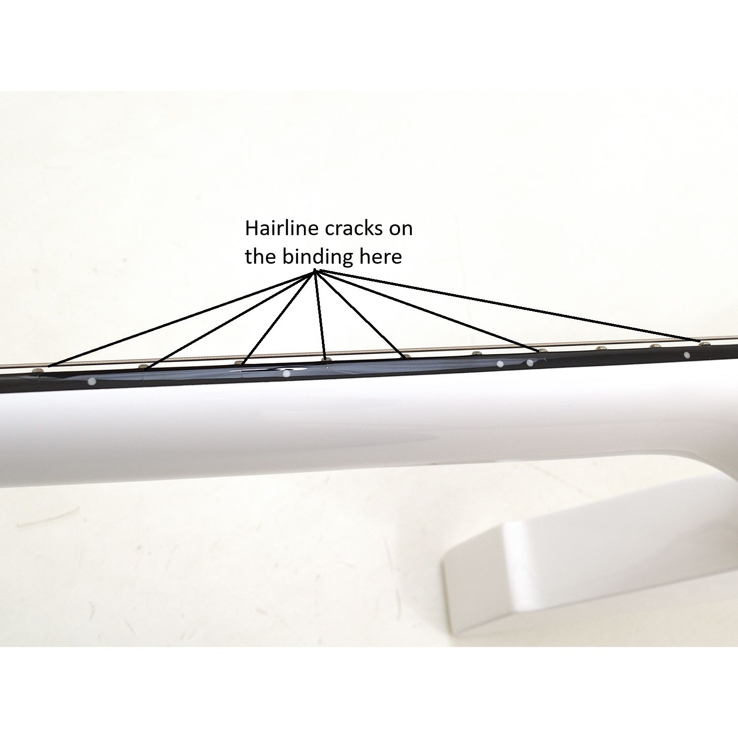 This B stock LTD Snakebyte is unplayed and in excellent condition! There are hairline cracks on the binding of the fretboard, just cosmetic and smooth to the touch there. please see the close-up picture for more detail. A great deal on an awesome guitar! Hard Case is included.