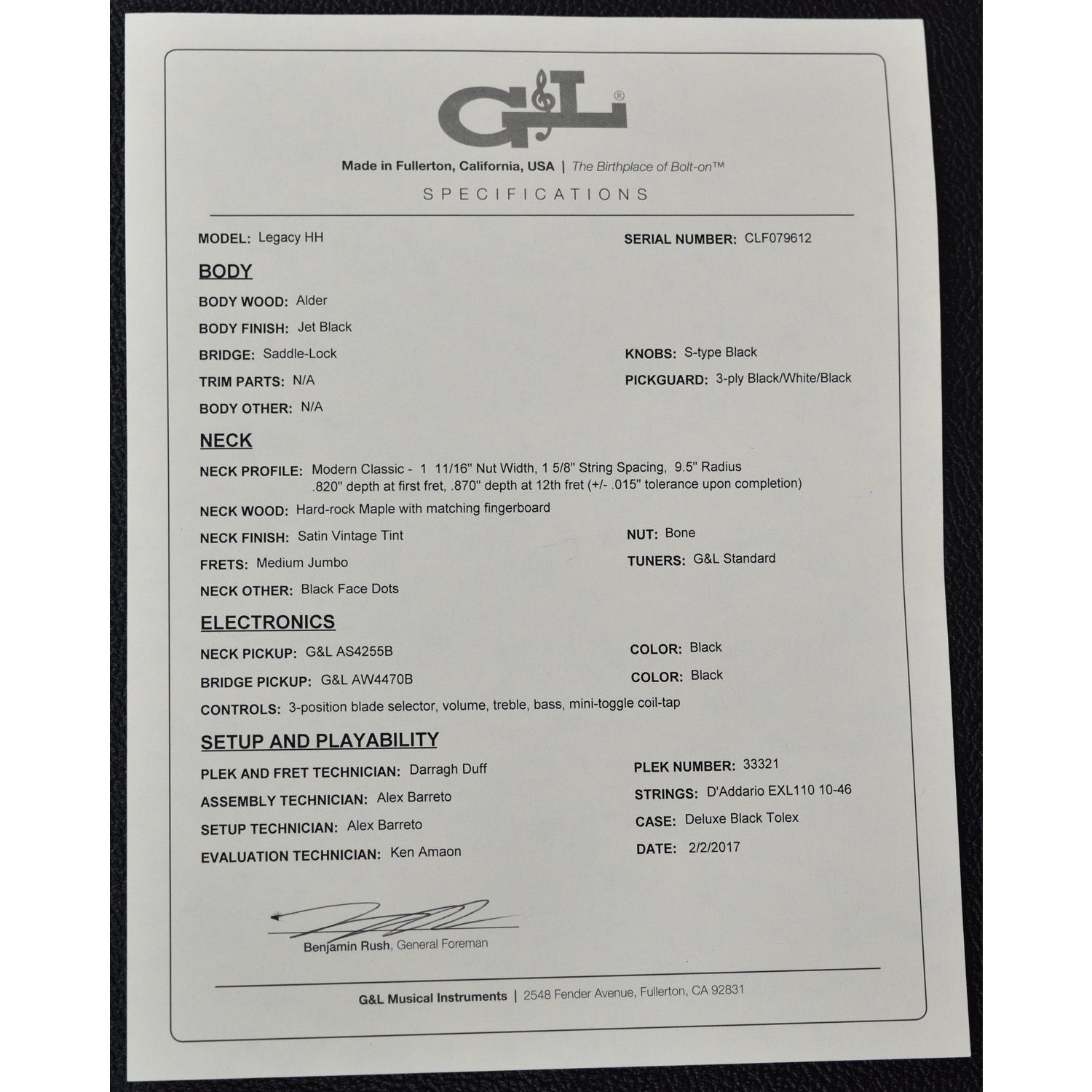 The G&L USA Legacy HH electric guitar features an alder body, hard-rock maple neck with matching fingerboard, a set of G&L AW4470B/AS4255B pickups, and saddle-lock bridge.>