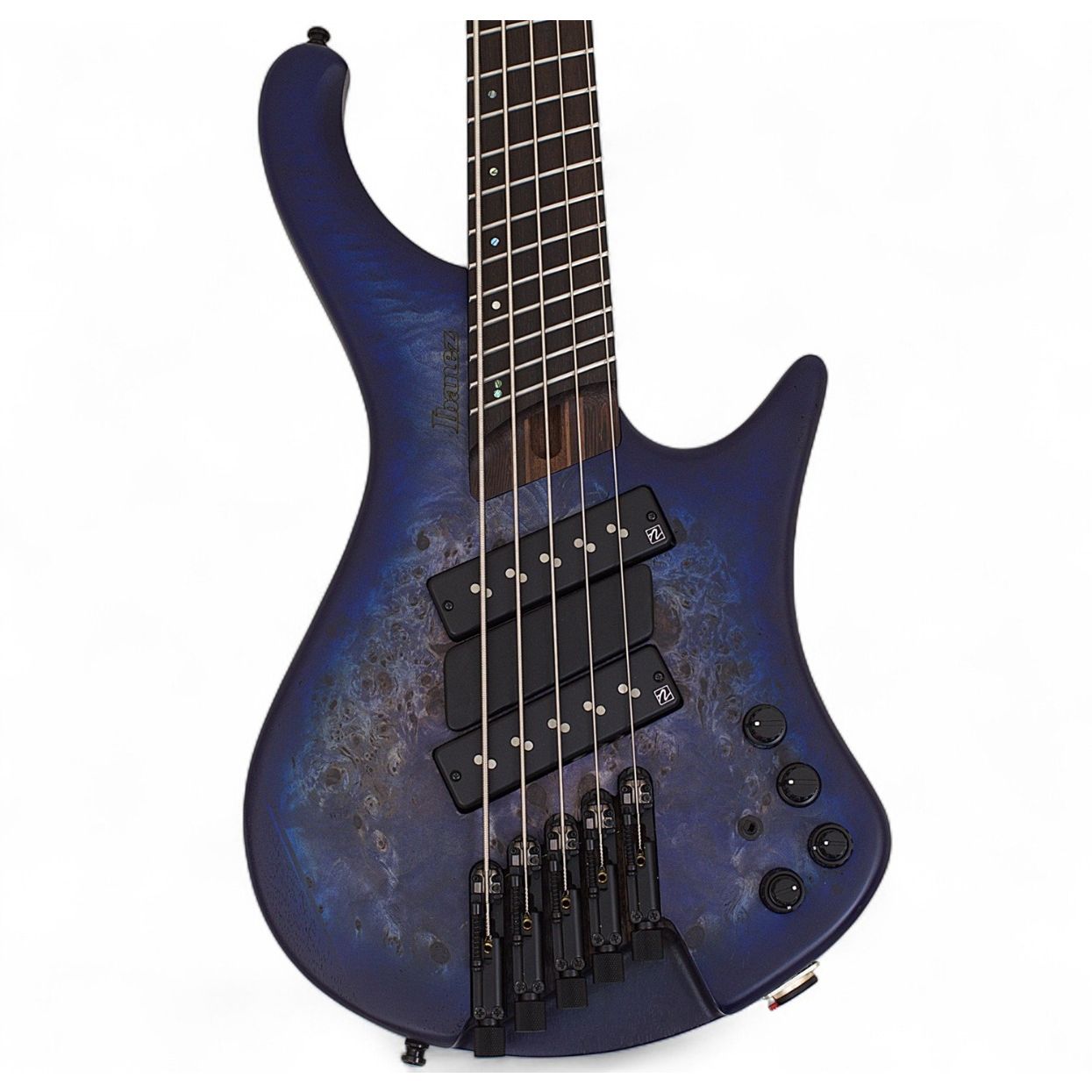 Featuring a beautifully figured Poplar Burl top on a lightweight African Mahogany body, the EHB1505MS delivers a warm, resonant tone with exceptional sustain and clarity. The 9-piece Panga Panga/Walnut neck reinforced with graphite rods ensures rock-solid stability, while the Nordstrand™ Big Split custom pickups provide articulate, full-range tone with hum-canceling design. Combined with the Vari-Mid 3-Band EQ and EQ bypass, this instrument offers limitless sonic possibilities. Includes an Ibanez gig bag.