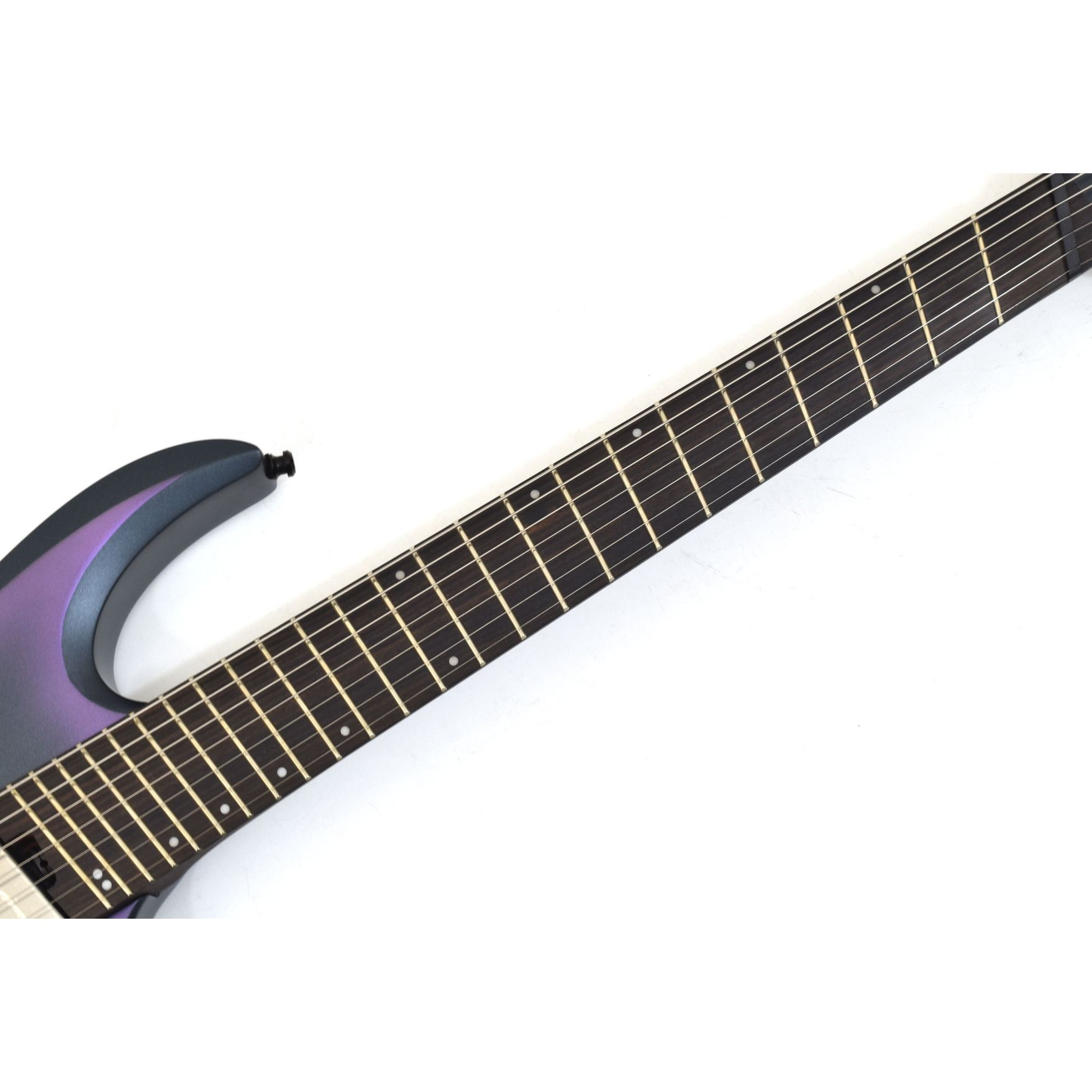 The Wizard III-7 for Multi-Scale 5pc Panga Panga/Walnut neck offers strength, stability, and fast playability. With a scale length ranging from 27.0" to 25.5", the multi-scale design improves string tension balance— delivering tighter low B response and comfortable high-string bends. A Macassar ebony fretboard with white step off-set dot inlays and luminescent side dots ensures visibility on dark stages.