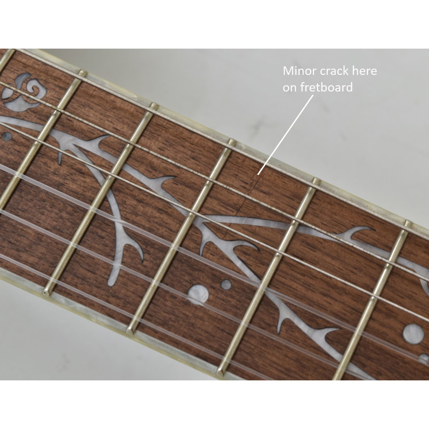 - Fretboard and Bridge: Both made from walnut, contributing to the guitar's clear, warm tonal qualities.