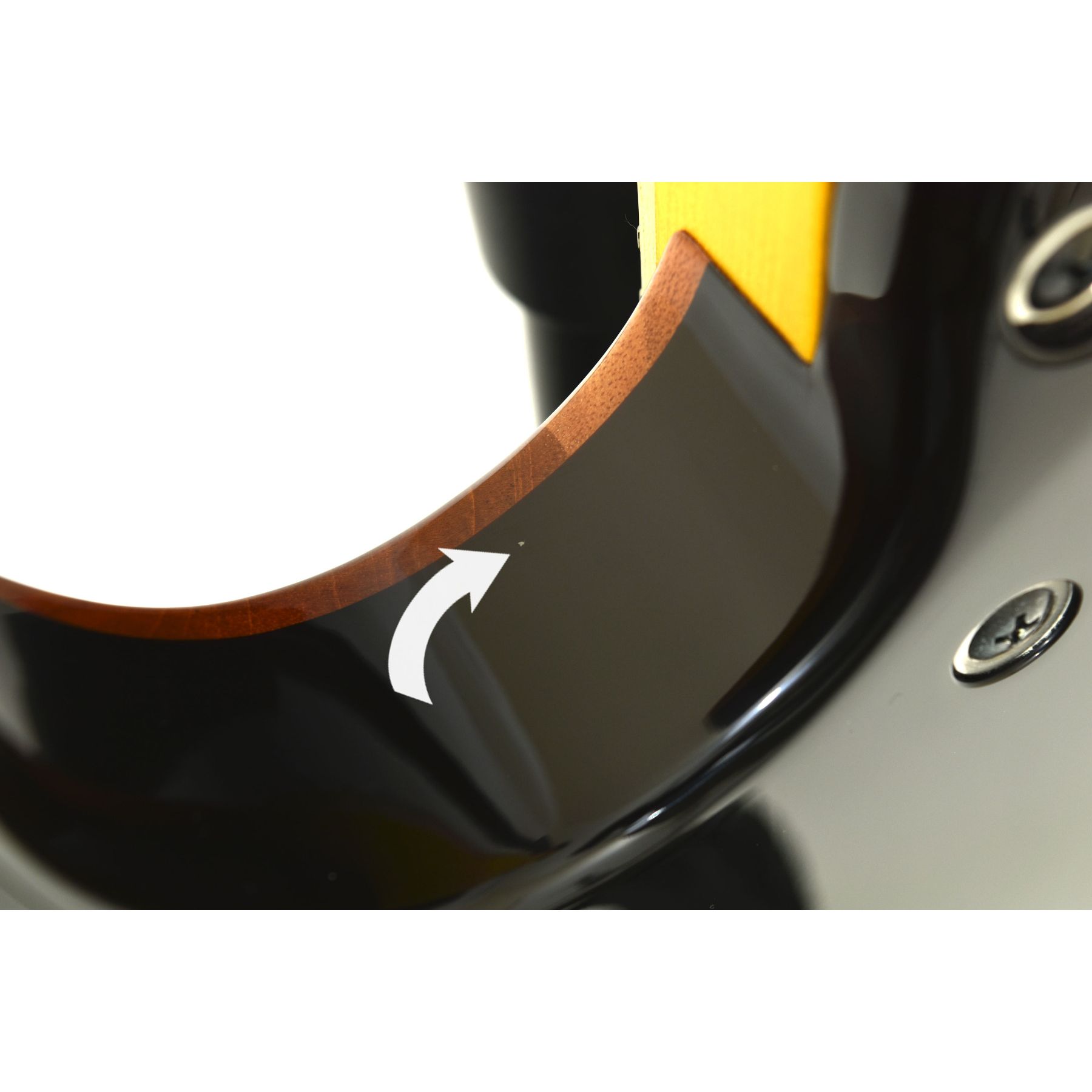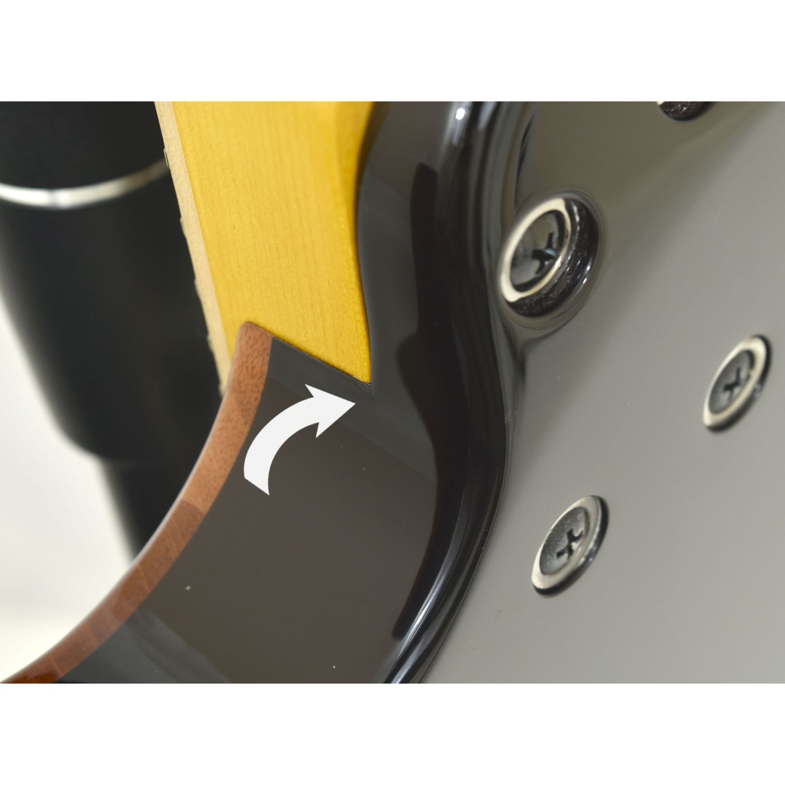 B-stock guitar with finish flaw in neck pocket and flaw under finish.