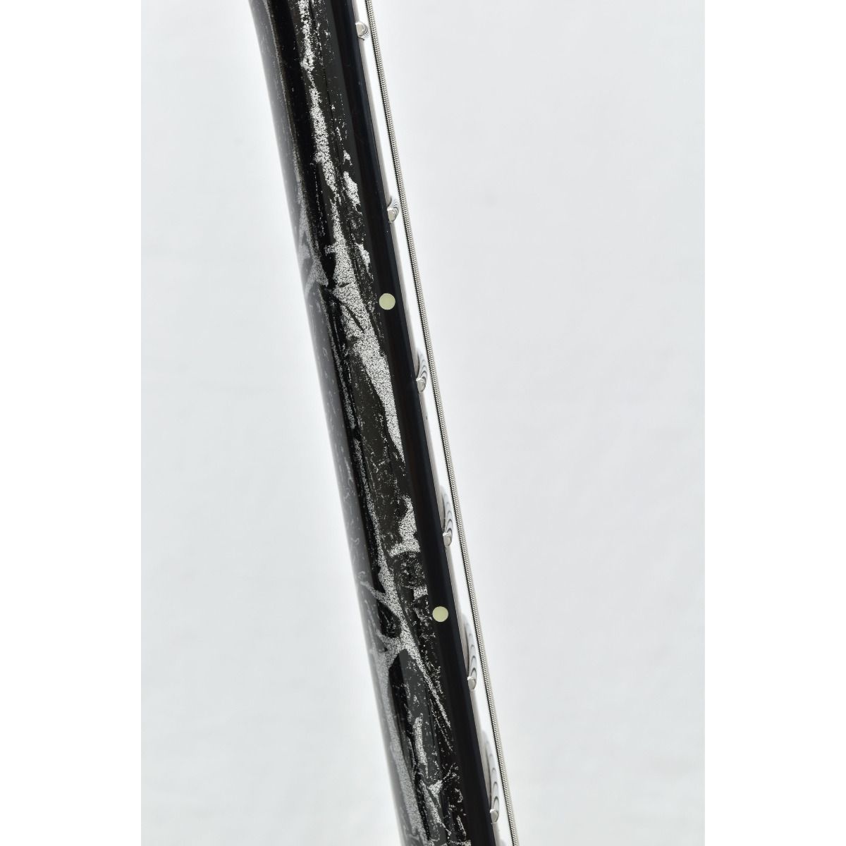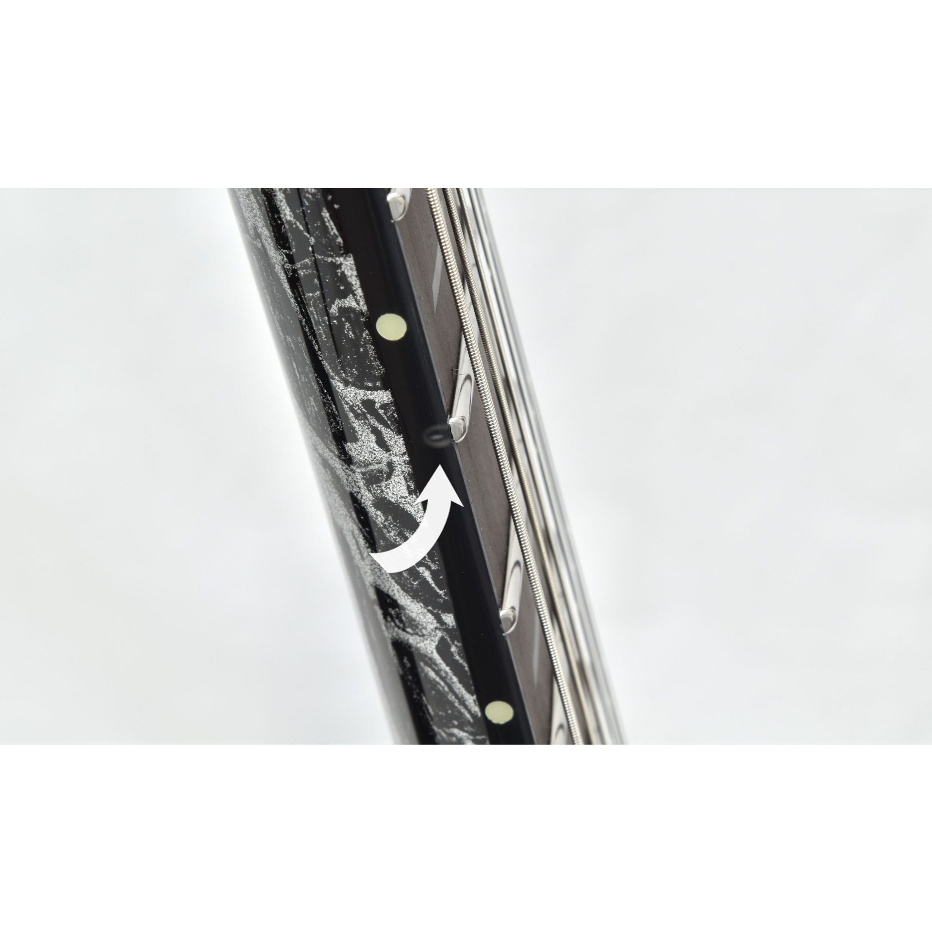 B-stock guitar with white stress spot in binding at 7th fret.