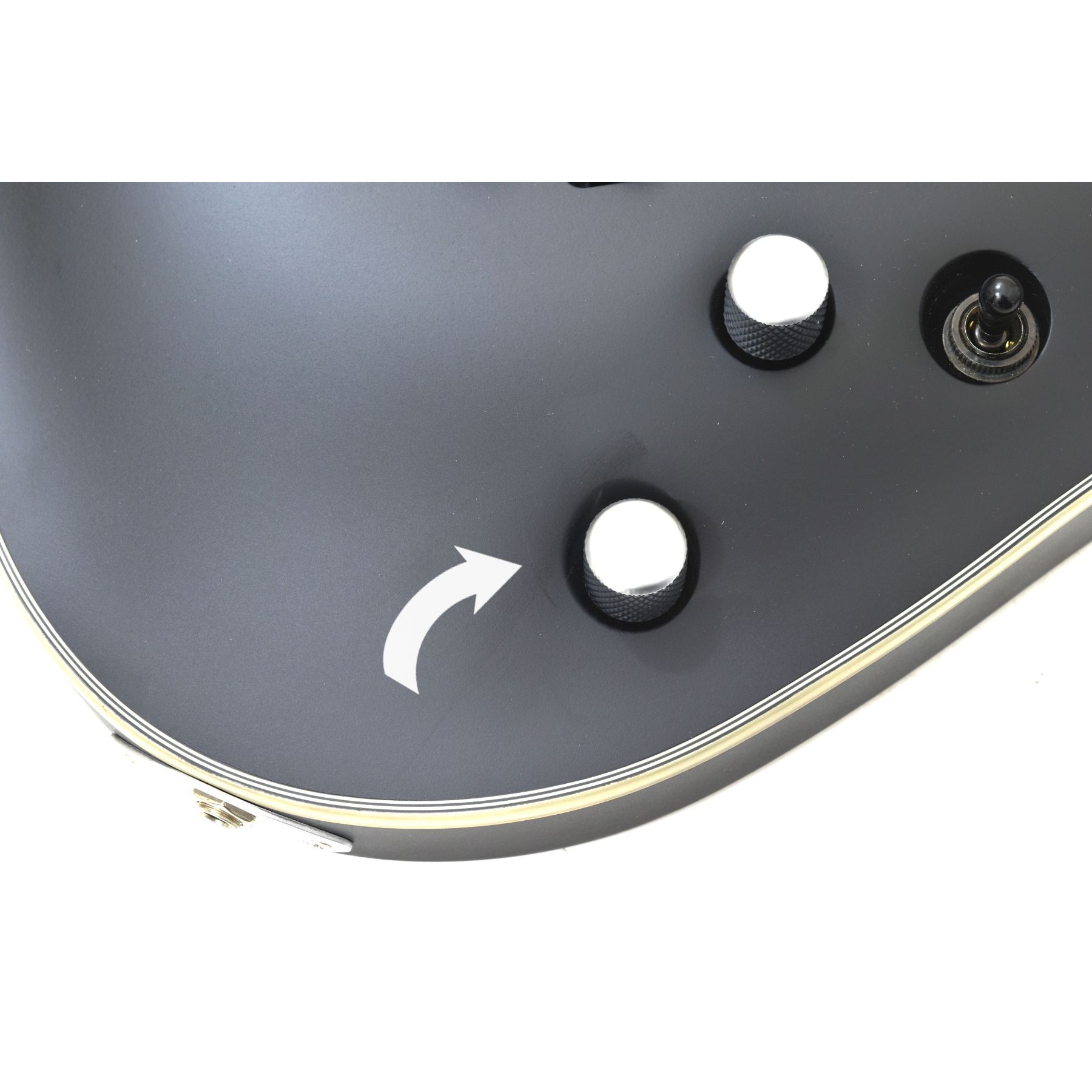 B-stock guitar with finish flaw near tone knob.