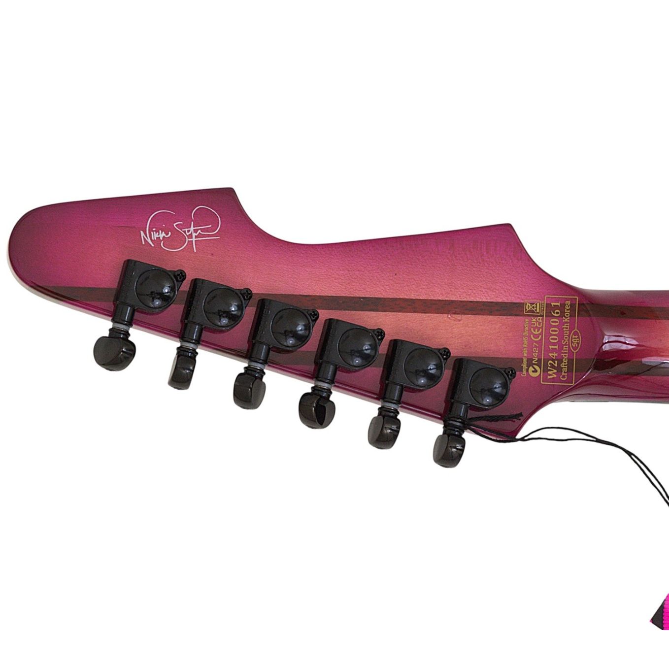 This B-Stock Schecter Nikki Stringfield A-6 FRS guitar is unplayed and in great condition! There are several cosmetic blemishes along the binding of the fretboard, please see the close up pictures for more details. Awesome deal on a beautiful guitar!