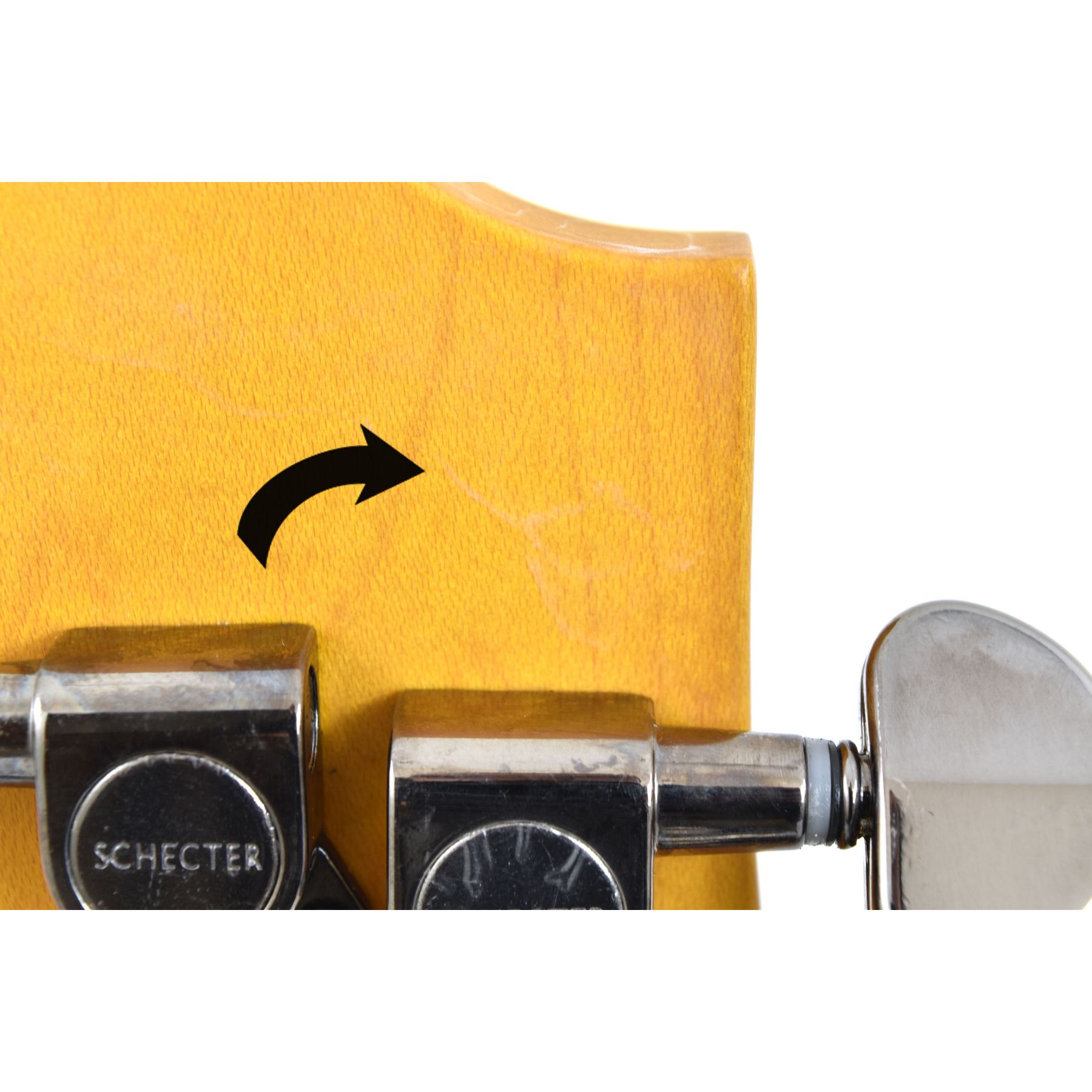 B-stock guitar with ding on neck and finish flaw on headstock.