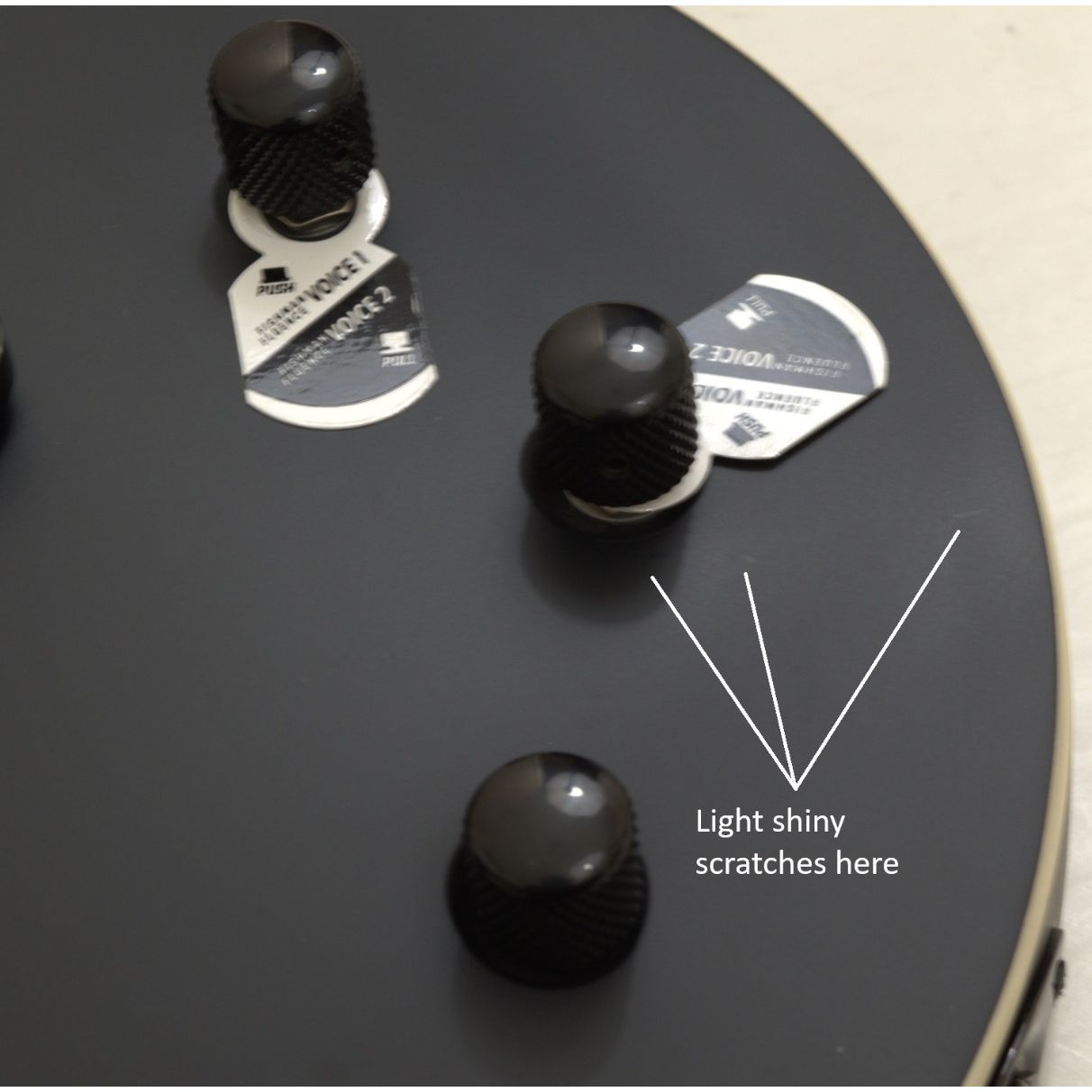 This B-stock Schecter Solo-II SLS Elite Evil Twin guitar is unplayed and in excellent condition! There are a few light shiny scratches near the control knobs. Please see the close-up pictures for more details. Awesome deal on an excellent guitar!